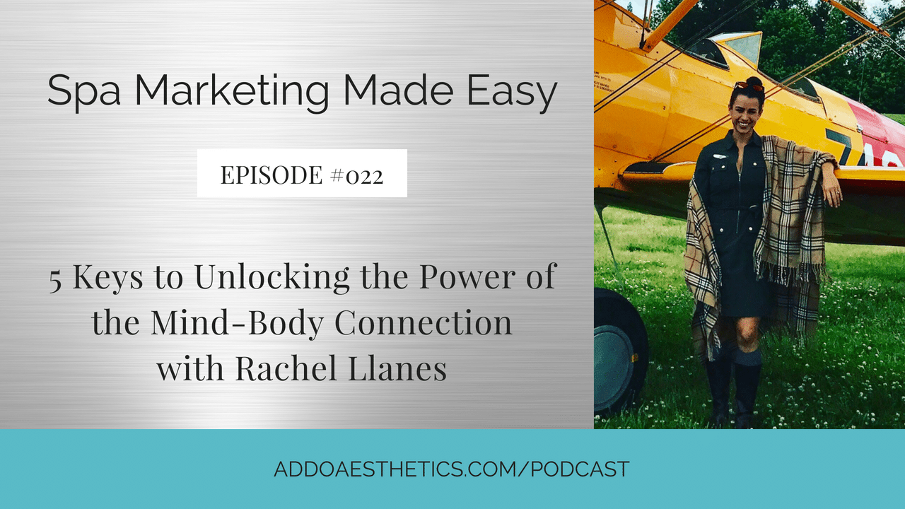 In this episode of Spa Marketing Made Easy, I’m talking with Rachel Llanes, Health Educator for the Army Wellness Center on Oahu, who is not only obsessed with learning and teaching about optimal human performance but helping others achieve it through the Mind-Body Connection.